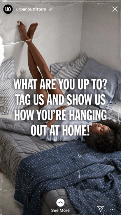 This course taught me ways in which businesses can improve their use of social media to get more conversions. I decided to take a look at some social media accounts from companies that have a presence. One business that caught my eye was Urban Outfitters. They use very visually appealing and colorful images on their Instagram page. Their photos are also very high quality and appeal to the tastes of their target audience of young women. They also take advantage of Instagram’s shop feature. Here they can insert links to the specific products that they post about. Their Instagram story also does a good job of engaging with the audience by asking an open-ended question. They keep it short and have a clear call to action. There is also a link to their website included. This particular story is relevant to current events regarding COVID-19 and is relatable to the viewer. It also asks to tag them in a post, further driving clicks to their page